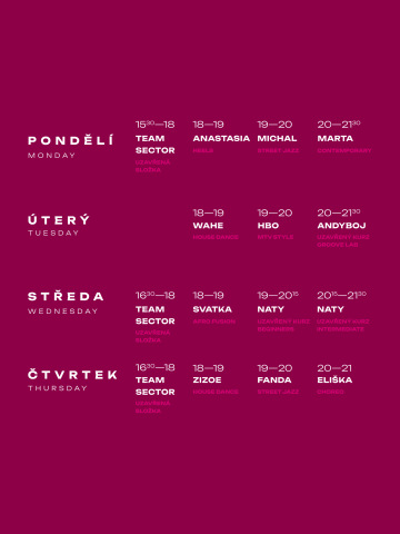 Jsme taneční studio v srdci Holešovic, kde se potkávají lidé, co milují tanec. Zaměřujeme se především na street dance, ale na své si přijdou i milovníci contemporary. Kromě pravidelných open lekcí se u nás koná také spousta víkendových workshopů, eventů a Sector si můžete pronajmout i na své vlastní lekce.